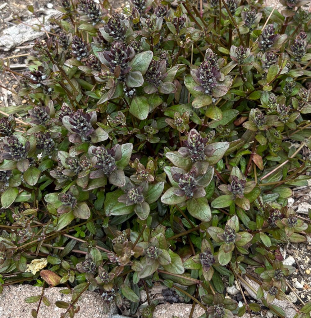 ベロニカと並んで、我が家の春の足元に欠かせないのがアジュガ・チョコレートチップです。普通のアジュガよりも葉が細かくて繊細な「チョコレートチップ」という名前の通り、深い色合いの葉が密集して地面を覆ってくれます。