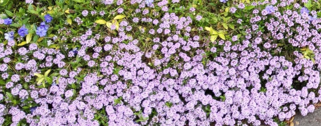 ピンクの主役、もう一人はタイム・ロンギカリウスです。数あるタイムの中でも、北海道の気候でこれほど見事な「花の絨毯」を作ってくれる子は他にいないかもしれません。