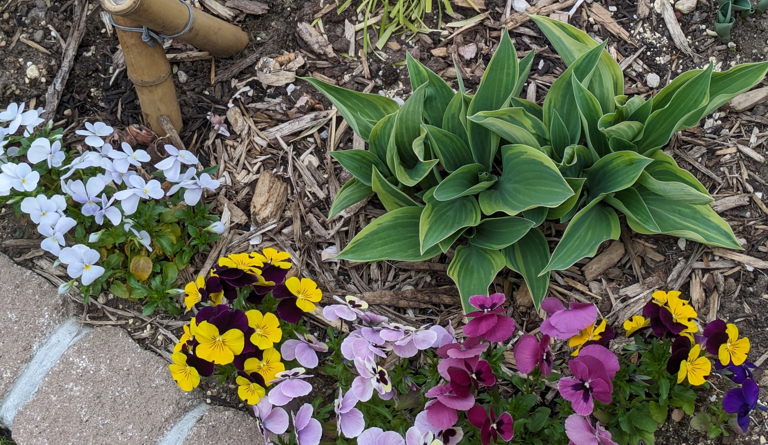 雪から出た直後は少ししんなりしていますが、春の陽射しを浴びると、花の勢いが「爆発的」に強くなっていきます。4月の寂しい庭を一番に彩ってくれるのは、他でもない、この冬を越えたビオラたちです。